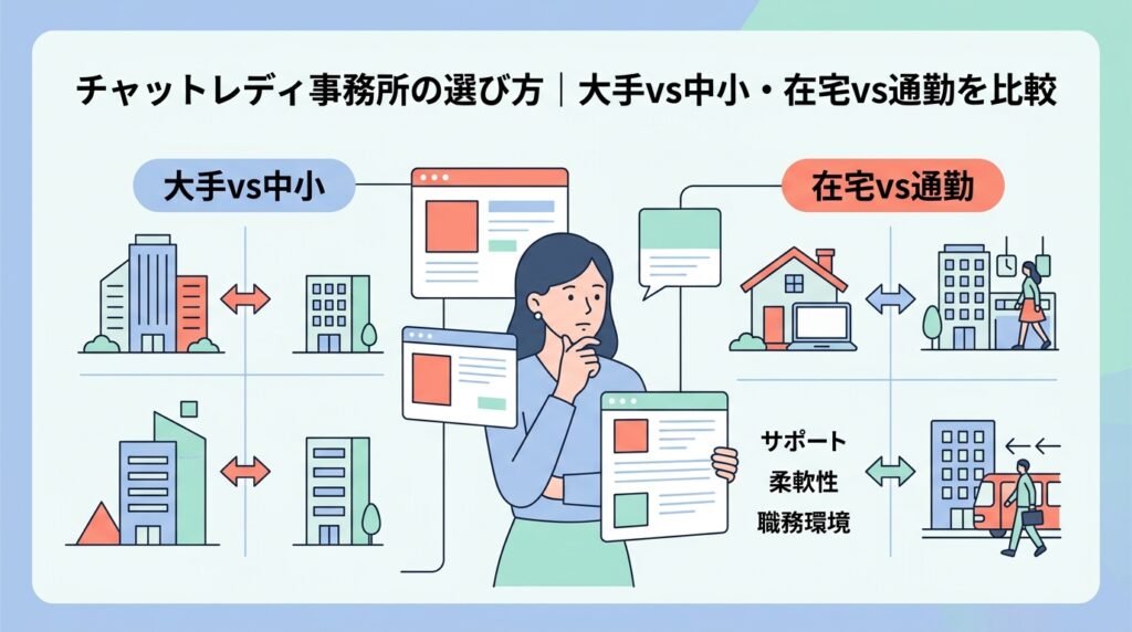 また、掛け持ちを考える段階で「どのサービスが自分の稼働スタイルに合うか」をあらためて整理したい方には、初心者向けチャットレディおすすめ比較もあわせて参考にしてください。