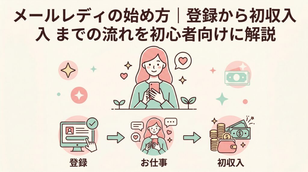 メールレディを始めたいけど何から手をつければいいか分からない方へ。登録に必要なもの・プロフィール設定・初収入までの流れを、初心者向けにステップ別でやさしく解説します。